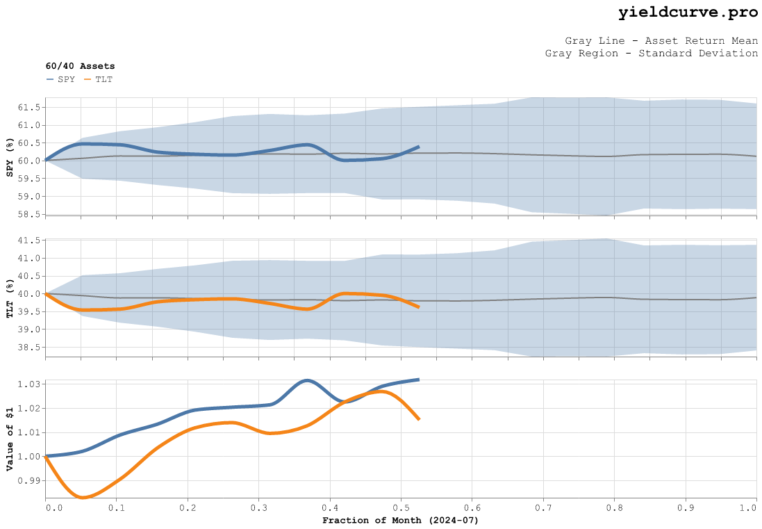 This is the July 2024 installment of a series of posts we make to track how the weights of a synthetic 60/40 stock/bond portfolio evolve intra-month.