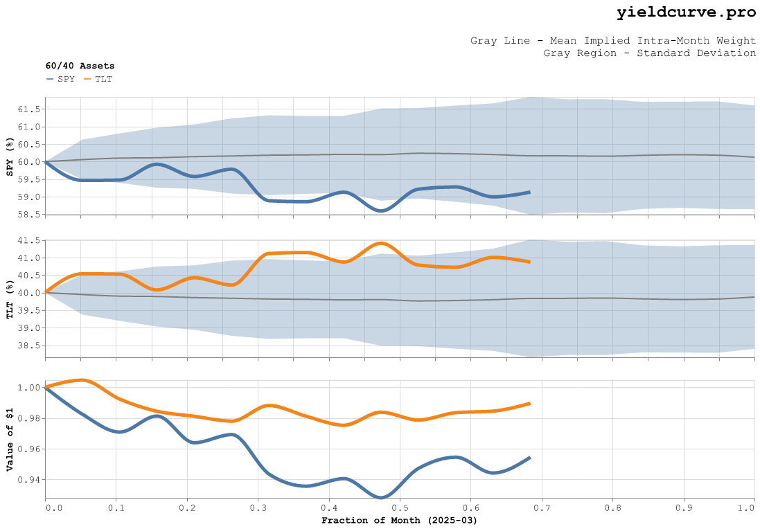 This is the March 2025 installment of a series of posts we make to track how the weights of a paper 60/40 stock/bond portfolio evolve intra-month.