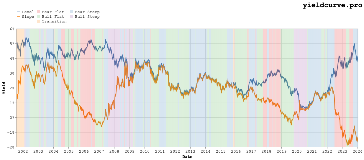 | Ticker | Bear Flattener | Bear Steepener | Bull Flattener | Bull Steepener | Start | End |