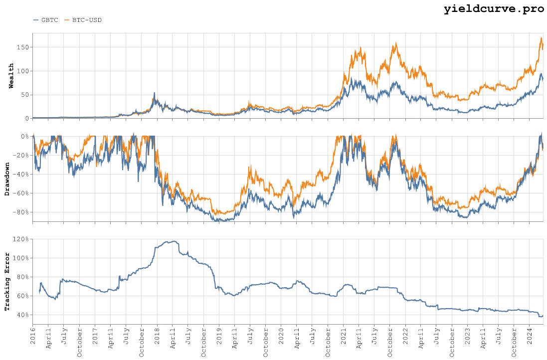 As a manager, it appears that Grayscale has improved over time with a noticeable inception-to-present reduction in tracking error.